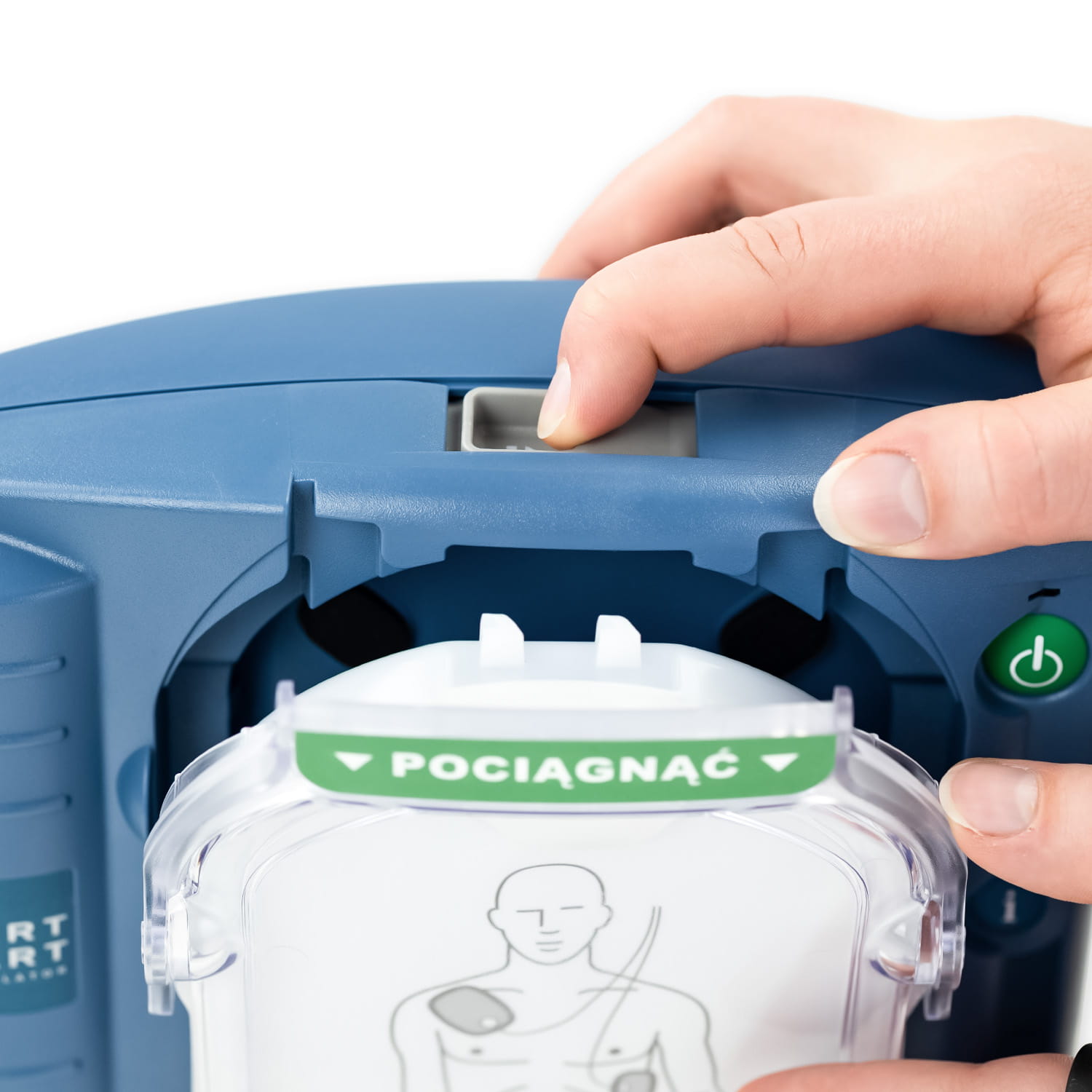 Model HS1 został zaprojektowany tak, by każdy – niezależnie od doświadczenia medycznego – mógł go bez problemu użyć. Dzięki wyraźnym komunikatom głosowym i czytelnym ilustracjom, urządzenie krok po kroku prowadzi przez procedurę ratunkową. Samodzielnie dostosowuje tempo działania, pomagając zachować spokój w krytycznych chwilach i zwiększając skuteczność interwencji. Aby uruchomić defibrylator, wystarczy pociągnąć zielony uchwyt. Od tego momentu urządzenie instruuje użytkownika, jak przykleić elektrody, przeprowadzić defibrylację oraz rozpocząć resuscytację. Dodatkowo podpowiada, z jaką częstotliwością i siłą wykonywać uciśnięcia klatki piersiowej oraz jak przeprowadzić oddechy ratunkowe.