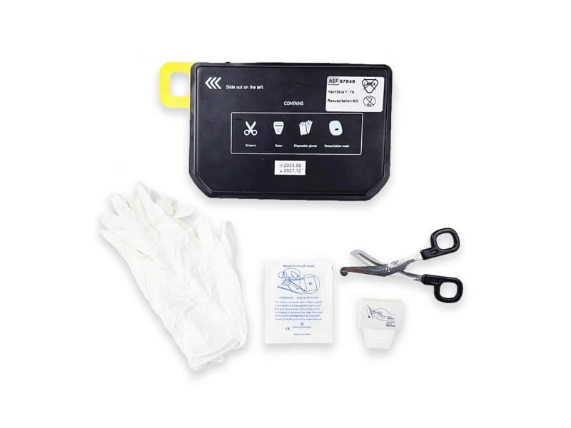 Ergonomiczna, odporna na wstrząsy i zabrudzenia obudowa sprawia, że HeartSave YA sprawdza się w każdym środowisku – w przestrzeni publicznej, zakładzie pracy, hali sportowej czy na lotnisku. Wbudowana miniapteczka umieszczona z tyłu urządzenia dostarcza wszystko, co potrzebne do rozpoczęcia RKO: maszynkę, maseczkę, rękawiczki i nożyczki. Dzięki trybowi pediatrycznemu aktywowanemu jednym przyciskiem, możesz udzielić pomocy dziecku bez konieczności wymiany elektrod – to oszczędność czasu i maksymalne uproszczenie procedury.